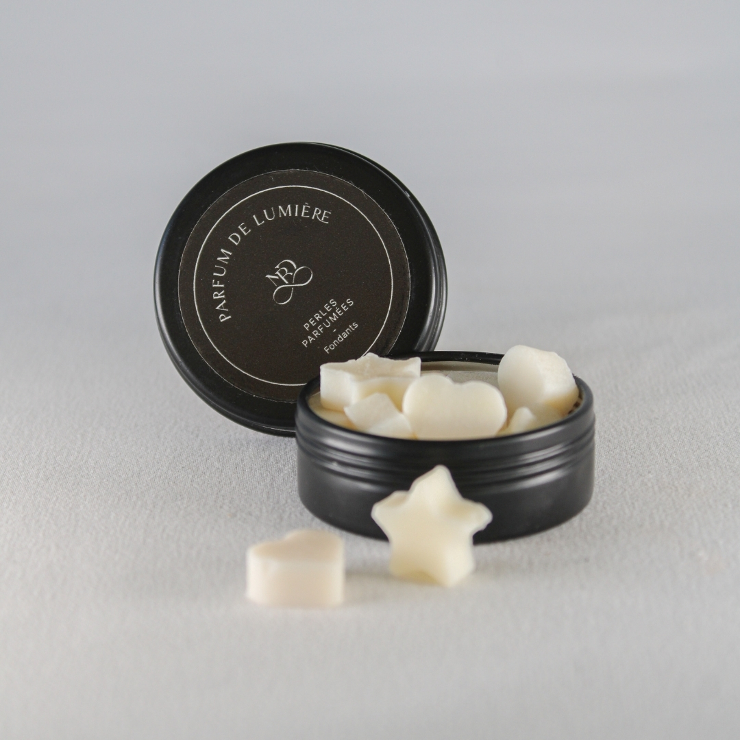 - Placez 3/4 perles, à laisser fondre dans votre brûle parfum – Parfum de Lumière.